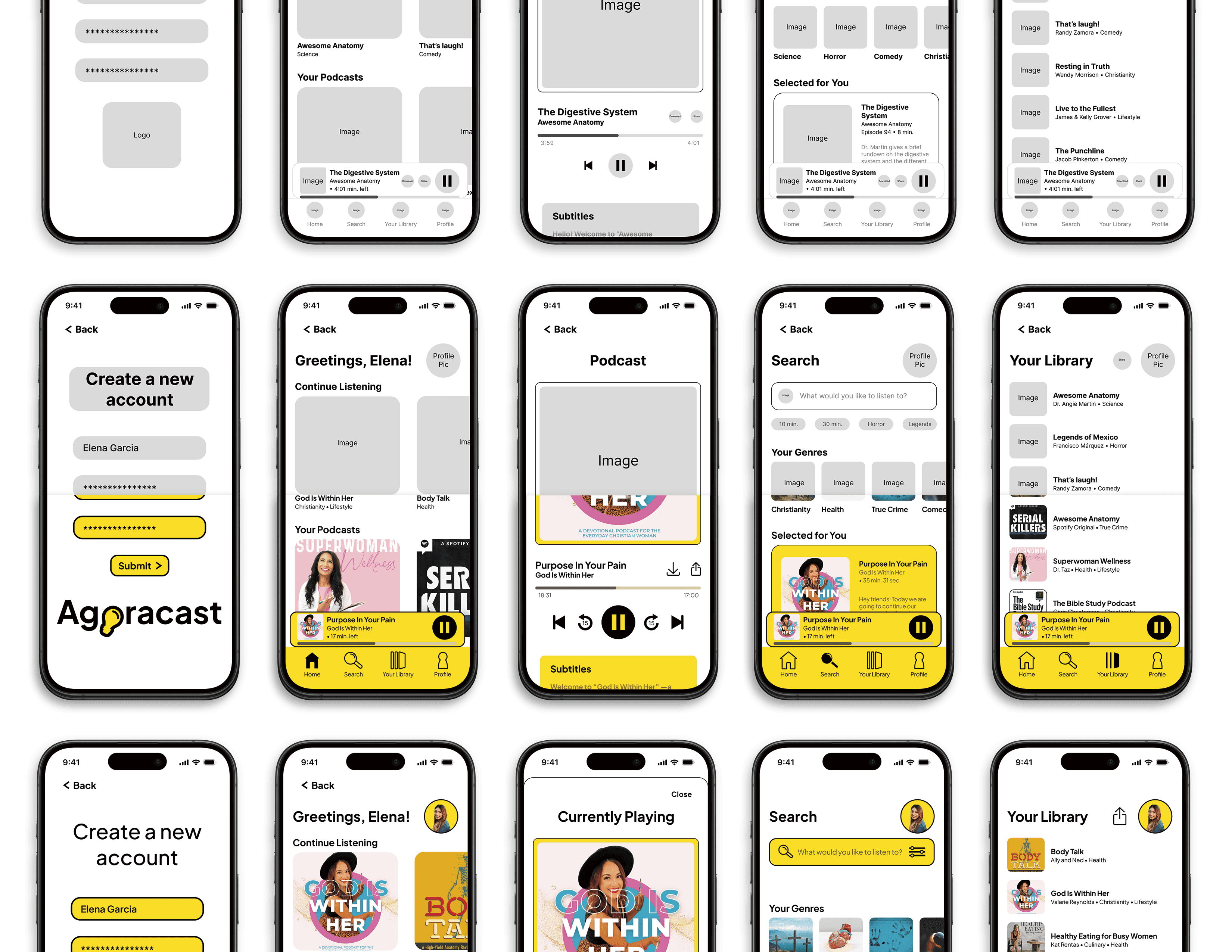 Agoracast is a podcast mobile app designed to simplify discovery, navigation, and content organization. The experience focuses on helping users easily explore, resume, and engage with meaningful content. Every decision was grounded in reducing friction and supporting real listening habits.