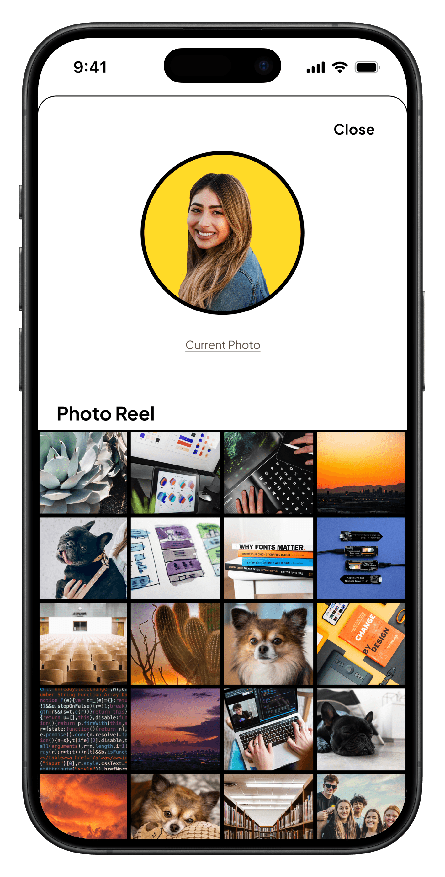 Yellow is used as a focused accent to symbolize ideas while black and white maintain a clean interface.