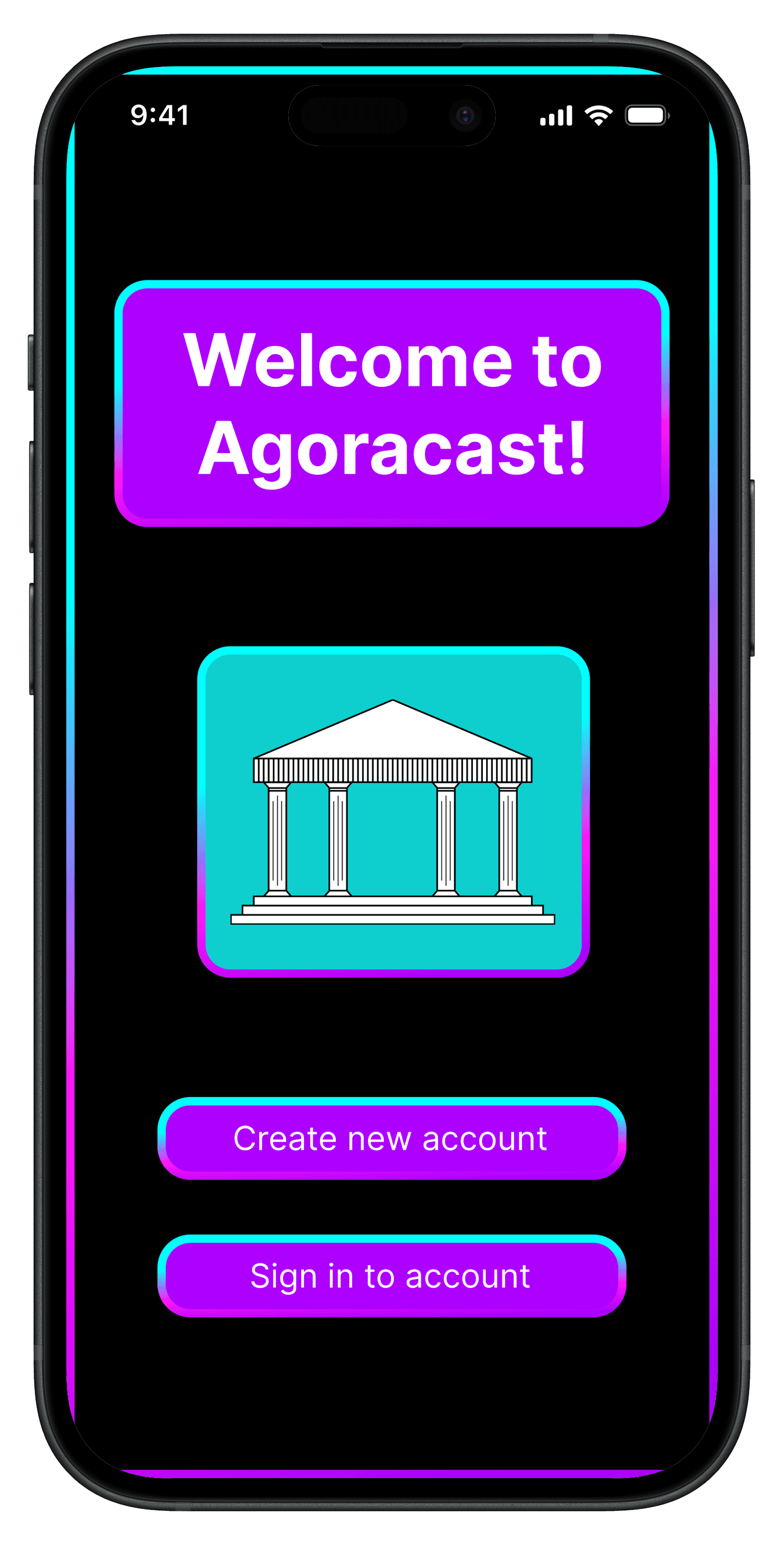 Agora is the ancient Greek word for “marketplace”. The Agoracast design supports usability while reinforcing the idea of a “marketplace of ideas.”