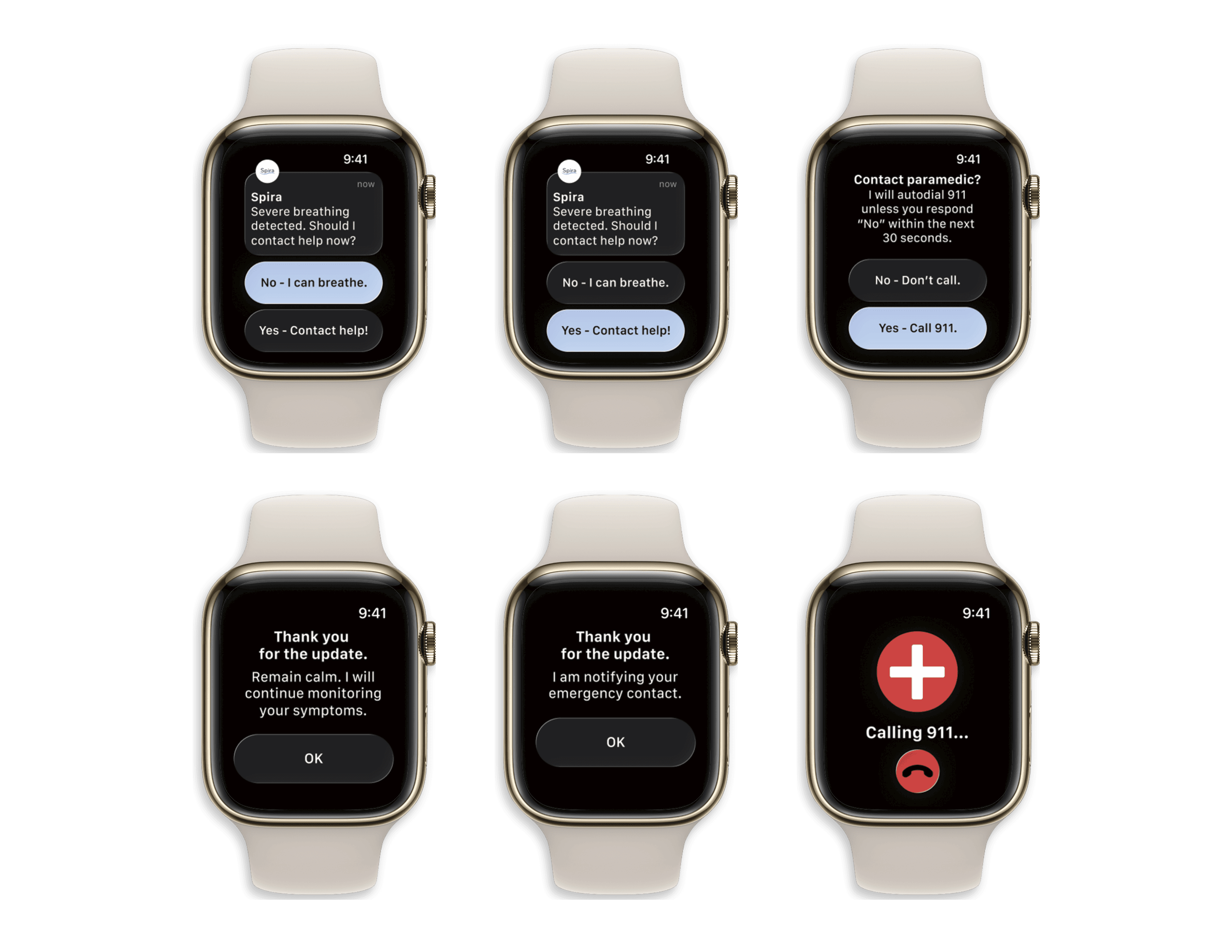 Smartwatch screens for the emergency protocol user flow